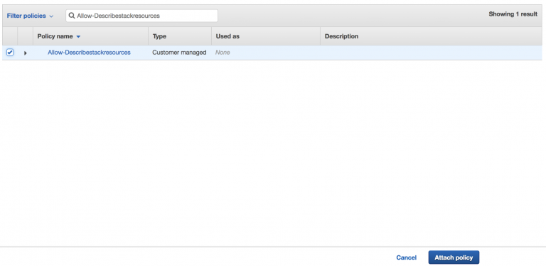 Search your newly created policy, and click Attach Policy: